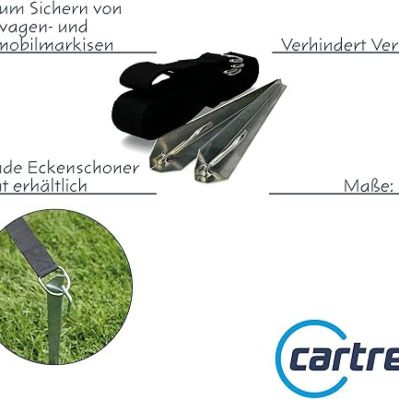 • Longitud: la cinta para tormenta de cartrend mide 12,5 m de largo, por lo que es adecuada para diferentes toldos y toldos grandes